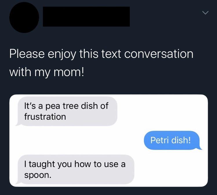 And? You don’t know me, my mom, or our relationship. This could have been a situation where my mom is a narcisistic horrible person, or it could have been a situation where my mom and I are giving each other a hard time and cracking jokes. Both of these make my response perfectly reasonable.