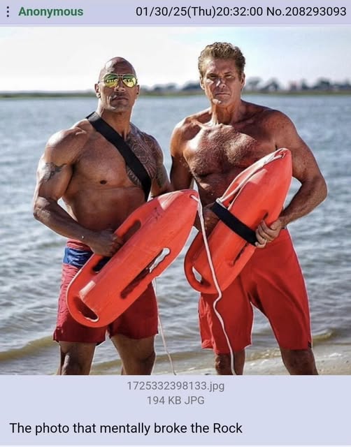 Hasselhoff is twenty years older than the rock, and supposedly an inch shorter at 6’4 lol