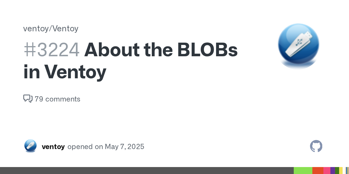 Der_Fossyler@feddit.org to Privacy Guides@lemmy.oneEnglish · 6 months agoUpdate: About the BLOBs in Ventoy · Issue #3224github.comexternal-linkmessage-square0fedilinkarrow-up11arrow-down10file-text