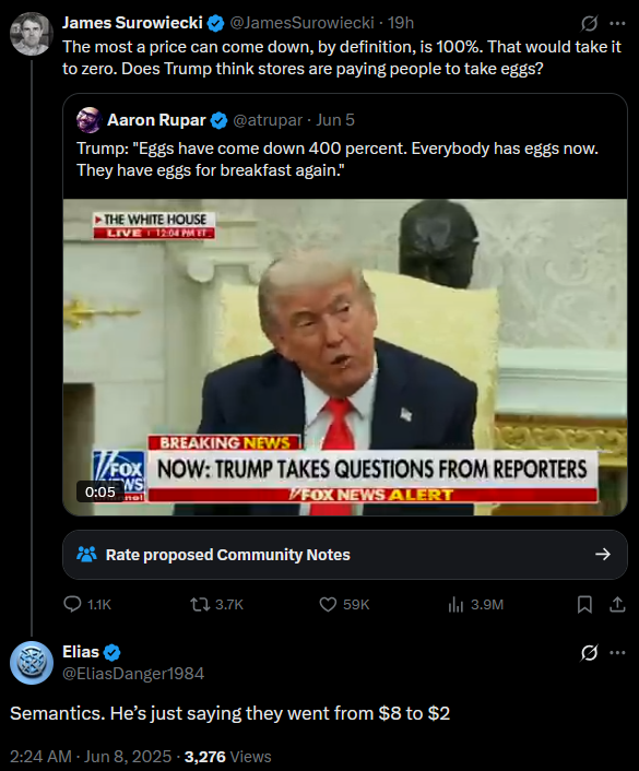 In a sense, it is semantics. It’s mathematically wrong but it’s correct in terms of messaging. If you say that prices increased by 100%, then decreased by 50%, to a lot of people it sounds like they are still higher than the original.