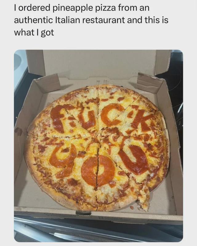 Yeah, nah. A proper Italian pizzeria wouldn’t have pineapple available as a pizza topping to begin with.