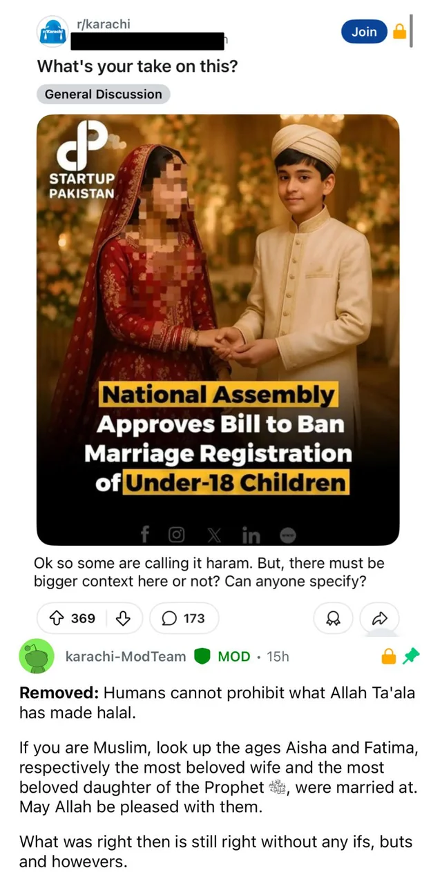 The point being made is that reddit Admins have zero problem banning anything that does not fit their “narrative”. And that narrative has a hierarchy not based on basic morality and common sense. Ask yourself this question, even if there was a single post, would reddit Admins allow the promotion of child marriage by a Christian religious group that was mostly comprised of White people?
