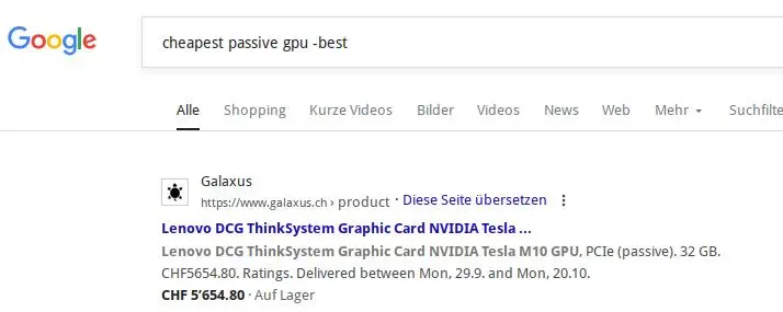- I don’t understand the issue. - It showed a 6000€ card as the first result… - Not a great result but not a great search either. Google is just searching webpages not a database of GPU prices.