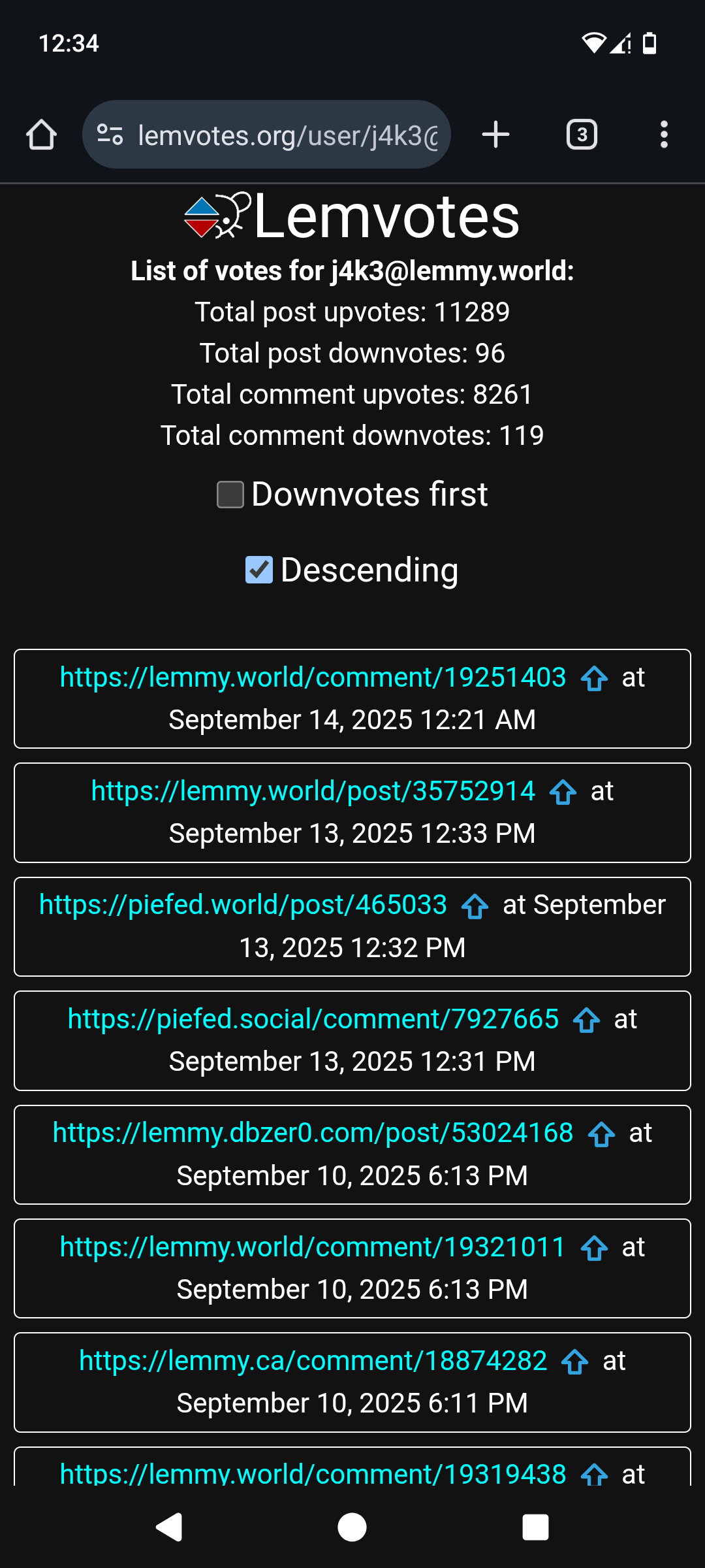 arrow-up1250arrow-down1imageYSK Lemvotes.org will show you votes on any post, comment, or by user, for anything on the fediverselemmy.world𞋴𝛂𝛋𝛆@lemmy.world to You Should Know@lemmy.worldEnglish · edit-22 months agomessage-square57fedilinkfile-text