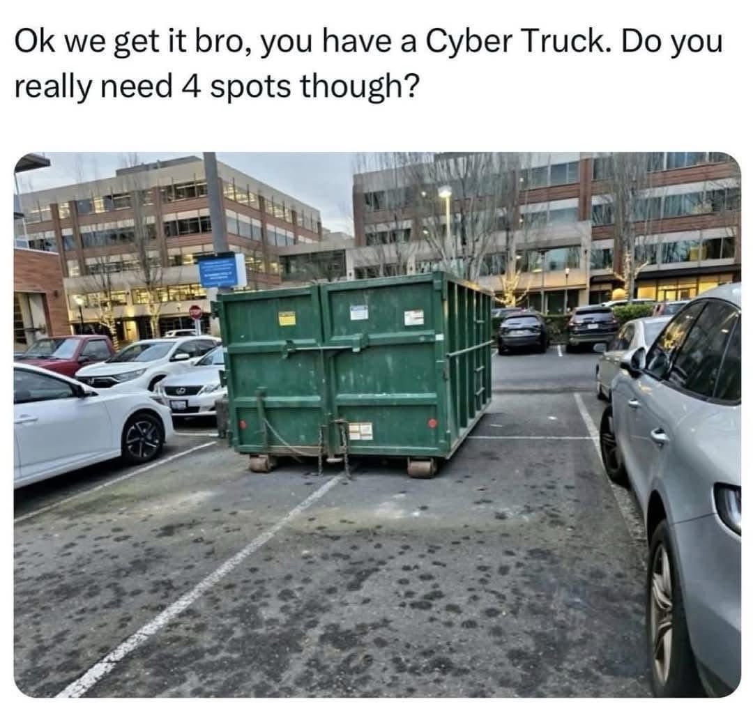 On a more serious note, this is making me realize that I haven’t seen a Cybertruck in probably a few months now, whereas earlier in the year it was at least weekly. Maybe all the owners suddenly learned shame? idk