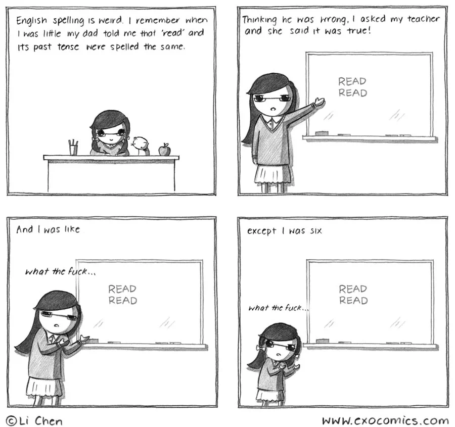 On the other hand, you seldom have the issue of having no clue how something is pronounced because you’ve only ever seen it written. So it balances out.
