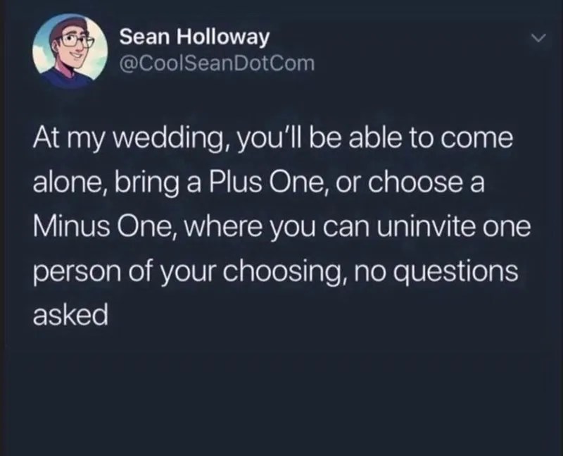 minus-squareOmgpwnies@lemmy.worldlinkfedilinkEnglisharrow-up3·8 days ago-1 * -1 = 1 ergo, they become each other’s plus-ones