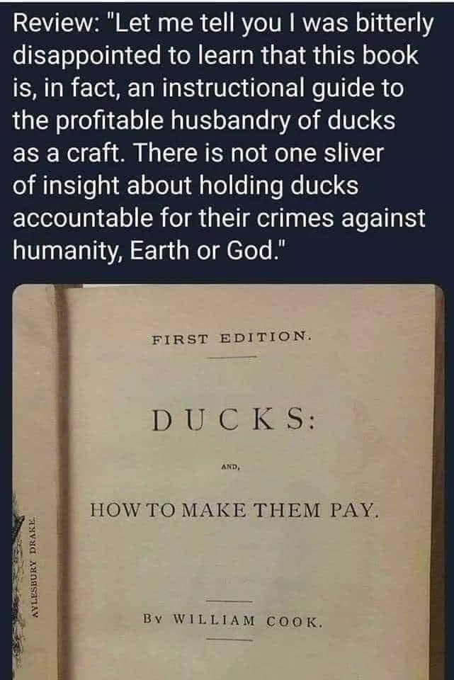 cm0002@sh.itjust.works to Funny@sh.itjust.works · 28 days agoDucks and, how to make them paylemmy.mlimagemessage-square9fedilinkarrow-up1434arrow-down12