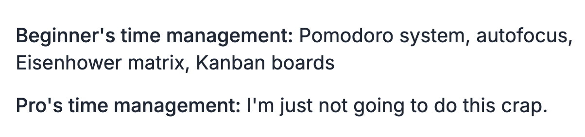 And the level beyond Pro is: I’m only doing the things my boss specifically asks.