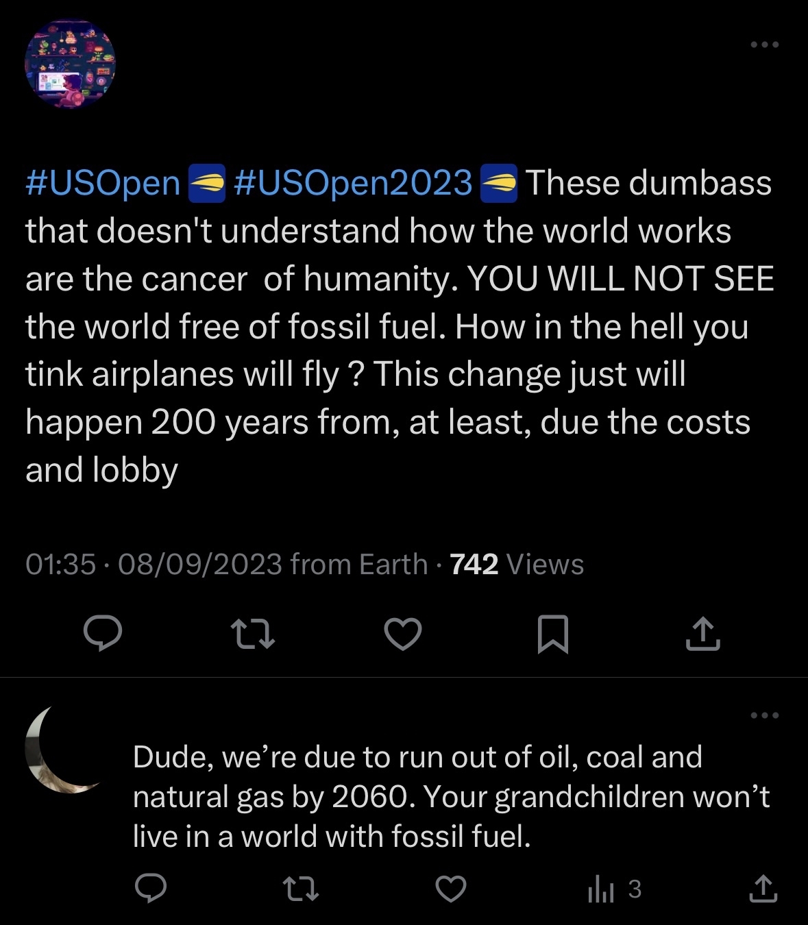 arrow-up124arrow-down1imageClimate change activists disrupted the US open last night, protesting the use of fossil fuels.feddit.ukSomeoneElseMod@feddit.ukM to Confidently Incorrect@lemmy.world · 2 years agomessage-square14fedilink