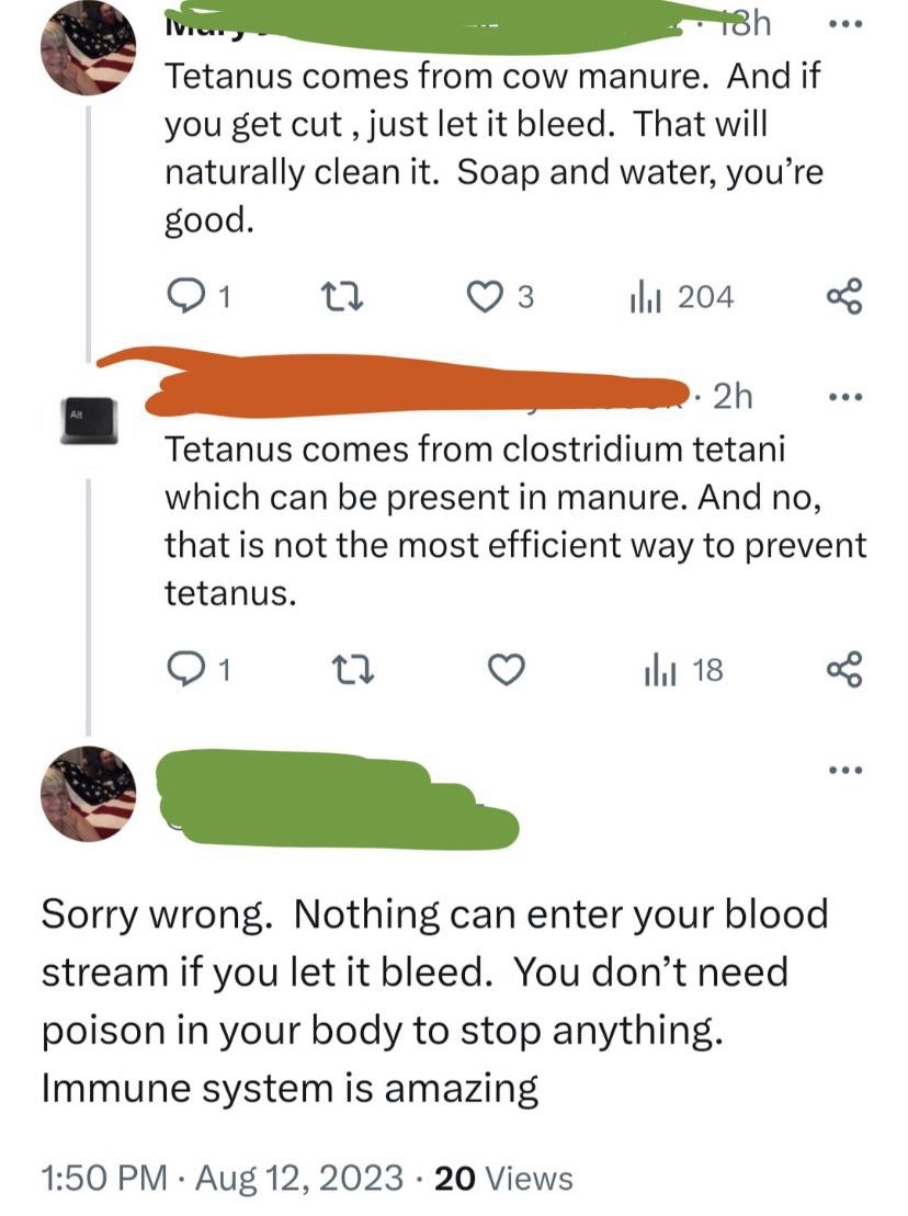 Yeah, it’s incredibly frustrating when propaganda uses partially true information to push their agenda. From a first aid perspective, letting the wound bleed a bit and get oxygen exposure can reduce the initial infection. You should absolutely get the vaccine though because why fucking risk it?