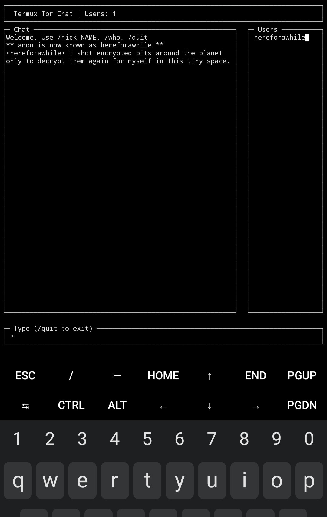 The install script contains all the pieces needed to be the host server or just a client. Because termux allows you to run multiple sessions, if you are the host, you have to run the server in one session and then connect in a different session.